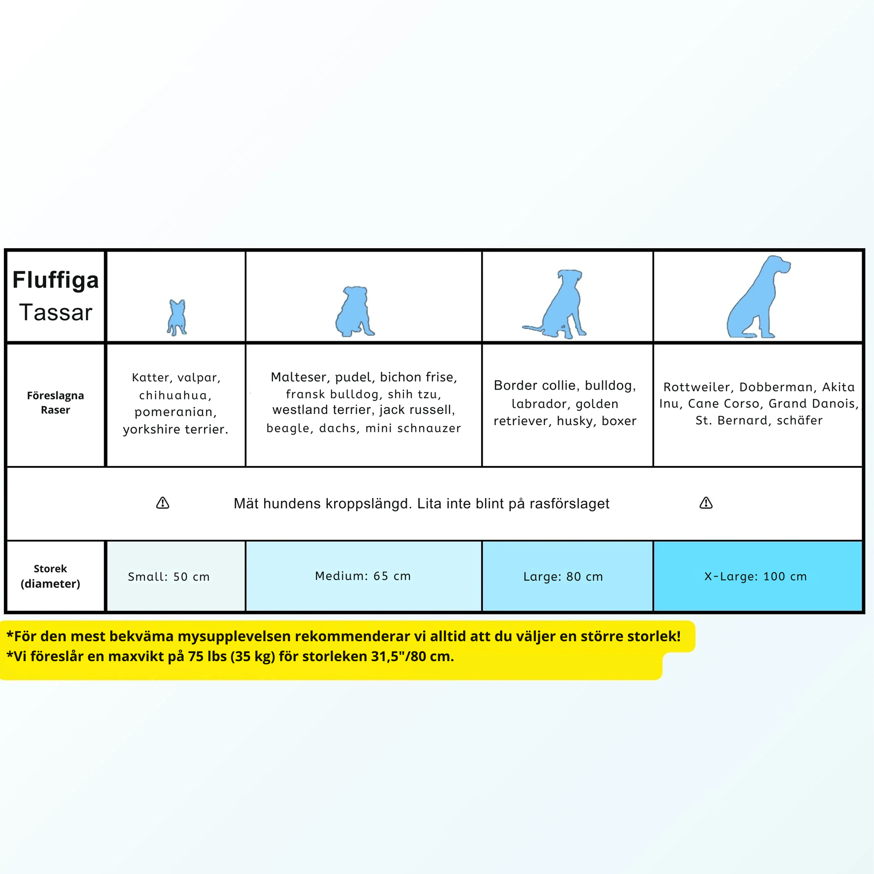🐶 Storlekar för alla raser och åldrar (hundar/katter)