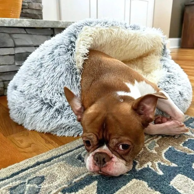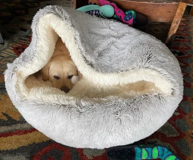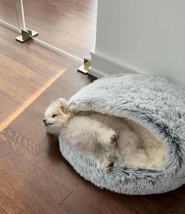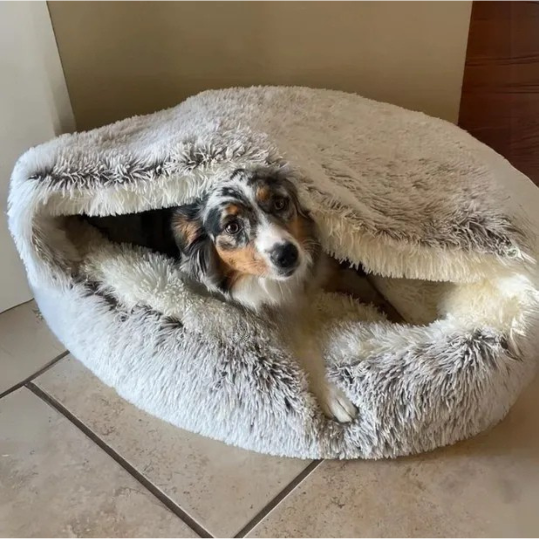 Mysgrottan har blivit godkänd av veterinärer för sin oöverträffade förmåga att erbjuda trygghet och komfort. Dess unika design med huva, tillsammans med extra stoppning och ett mjukt överdrag, skapar ett mysigt utrymme som känns precis som hemma, och påminner om värmen från en mors kärleksfulla omfamning. Denna lugnande design är särskilt hjälpsam för hundar som lider av separationsångest och stress.